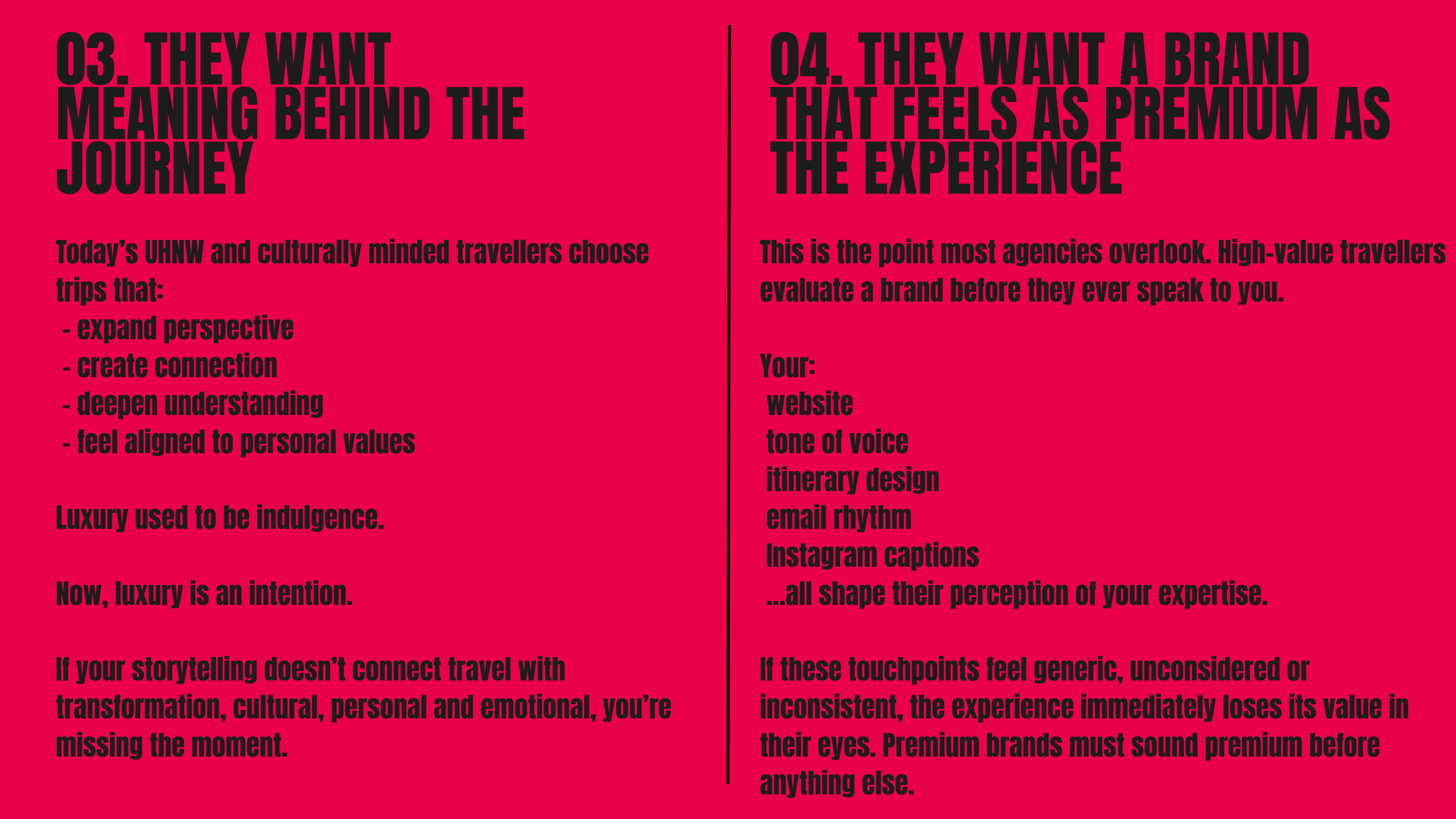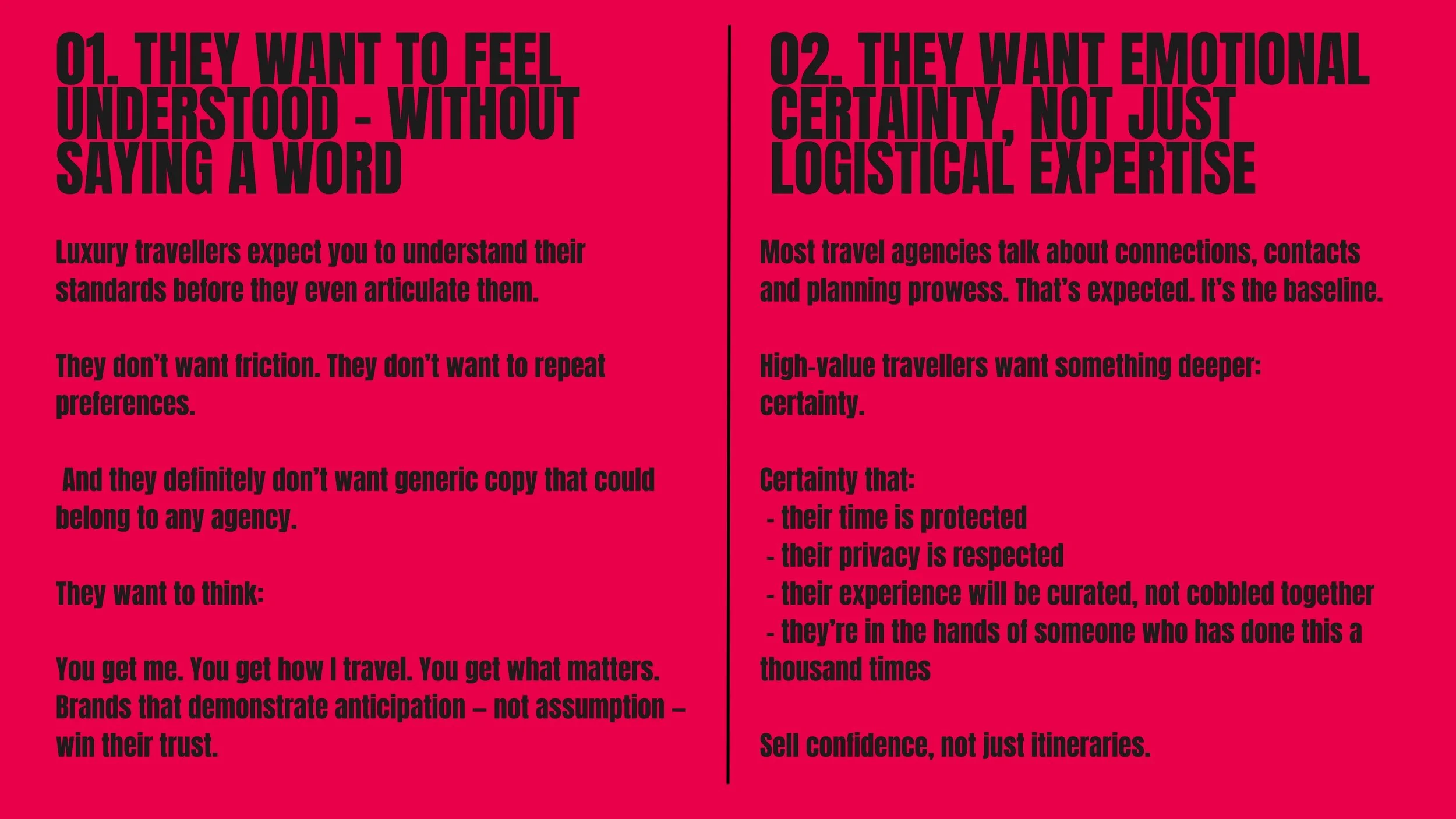 And while most travel brands focus on features, private guides, boutique hotels, tailor-made itineraries, high-value travellers are making decisions based on something far deeper: identity, emotion, trust and how a brand makes them feel in the first five seconds.